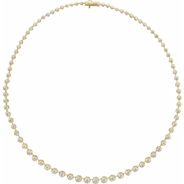 Make a statement with this stunning lab-grown diamond line necklace, featuring 6 3/4 carats total weight of brilliant round diamonds set in sleek 14K gold. Designed at a classic 16-inch length, this sustainable diamond necklace delivers timeless sparkle and sophistication. Perfect for layering or wearing alone.