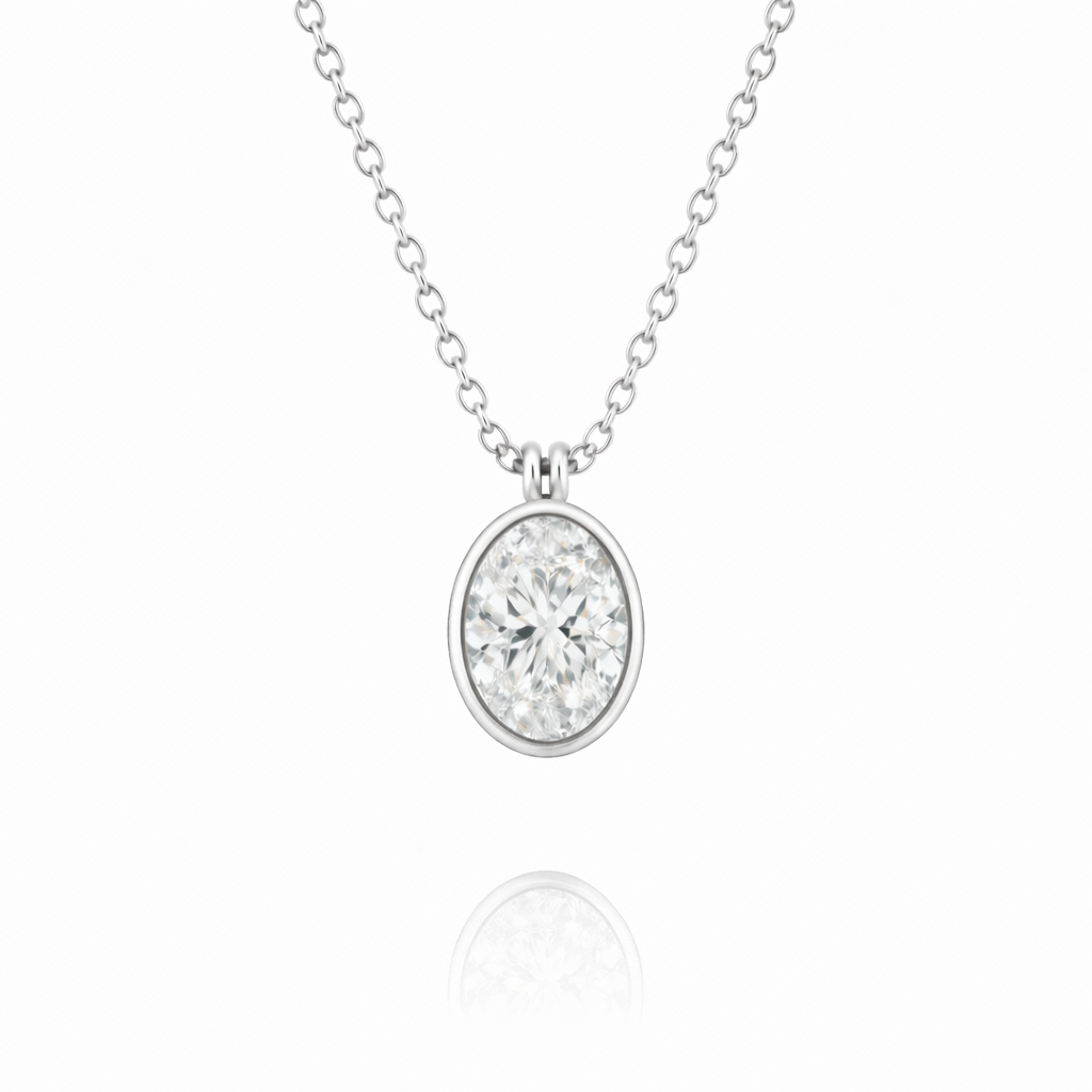 14K Gold Oval Cut Lab-Grown Diamond Bezel Solitaire Necklace