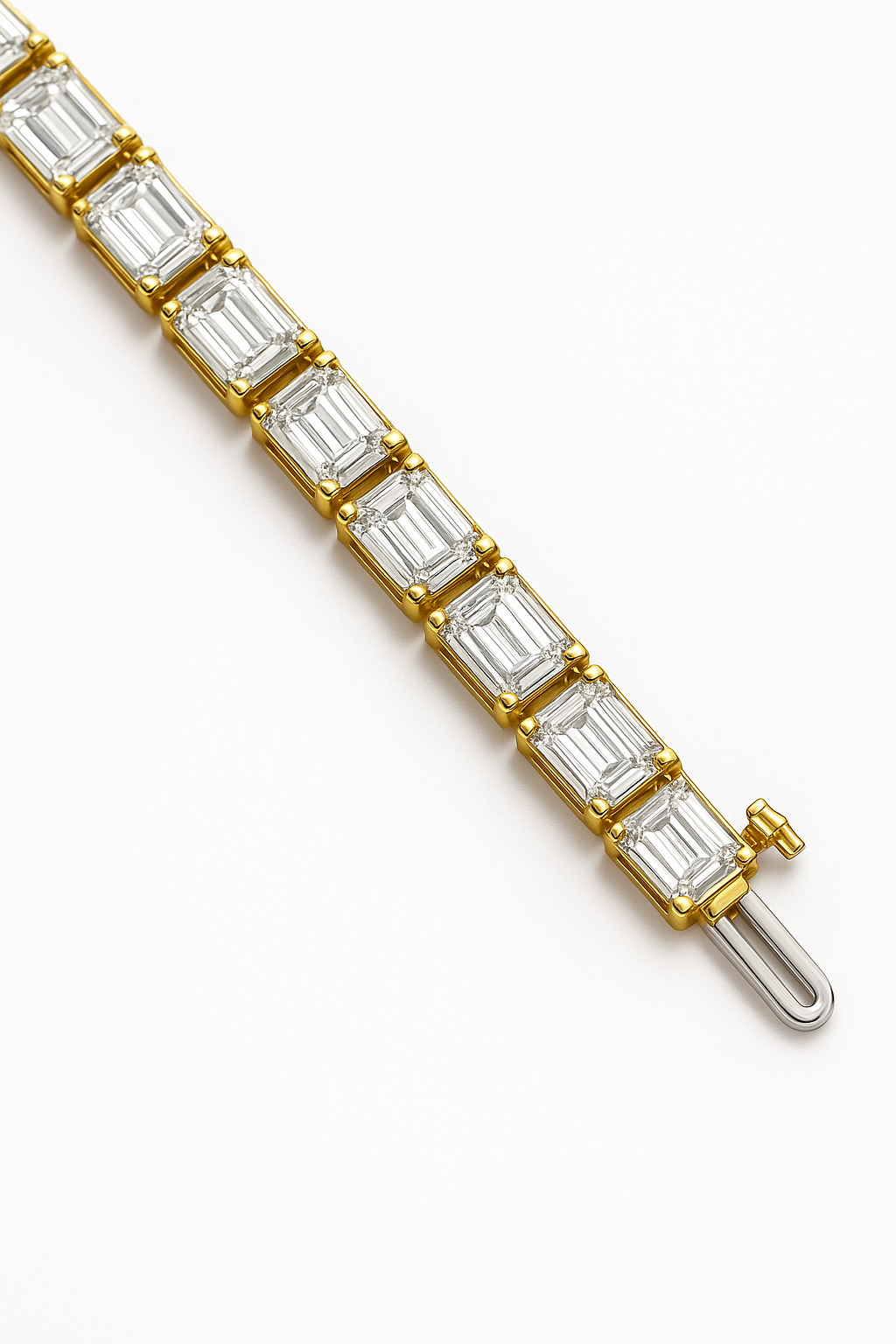 14k Gold Emerald Cut Lab Grown Diamond Tennis Bracelet, meticulously crafted to showcase the beauty of precision and symmetry. Featuring a continuous row of emerald-cut lab grown diamonds, this bracelet delivers a sleek, modern sophistication with unmatched brilliance.
