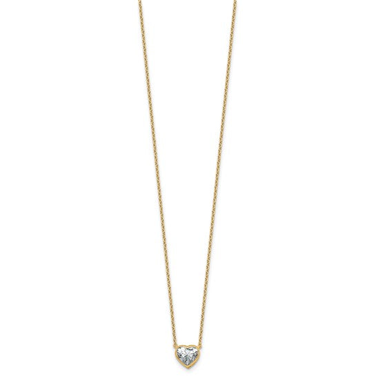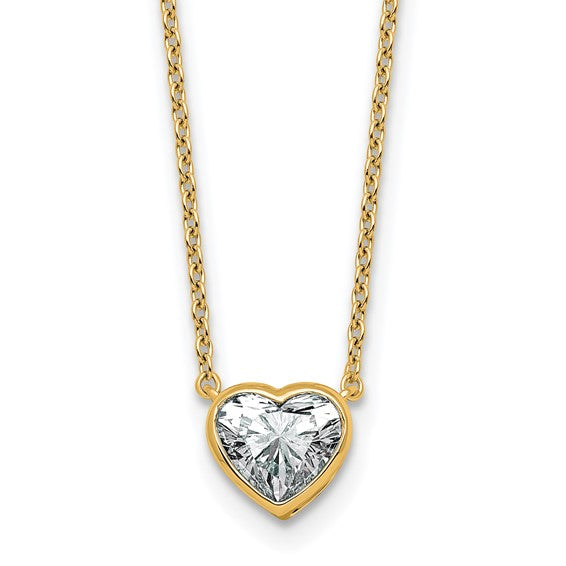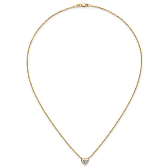 14K Gold 1 CT Lab Diamond Heart Solitaire Bezel Necklace