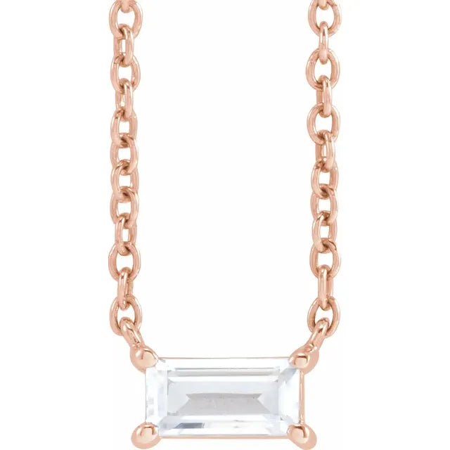 14K Gold 1/3 CT Lab-Grown Straight Baguette Diamond 16-18" Necklace