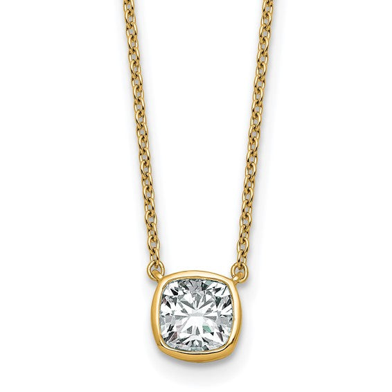 14K Gold Lab Grown Diamond Cushion Cut Bezel Necklace