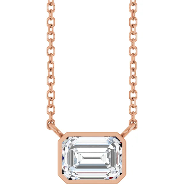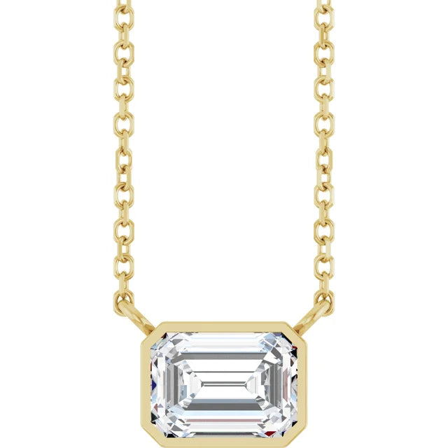 Lab Grown Emerald-Cut Diamond Bezel-Set Necklace