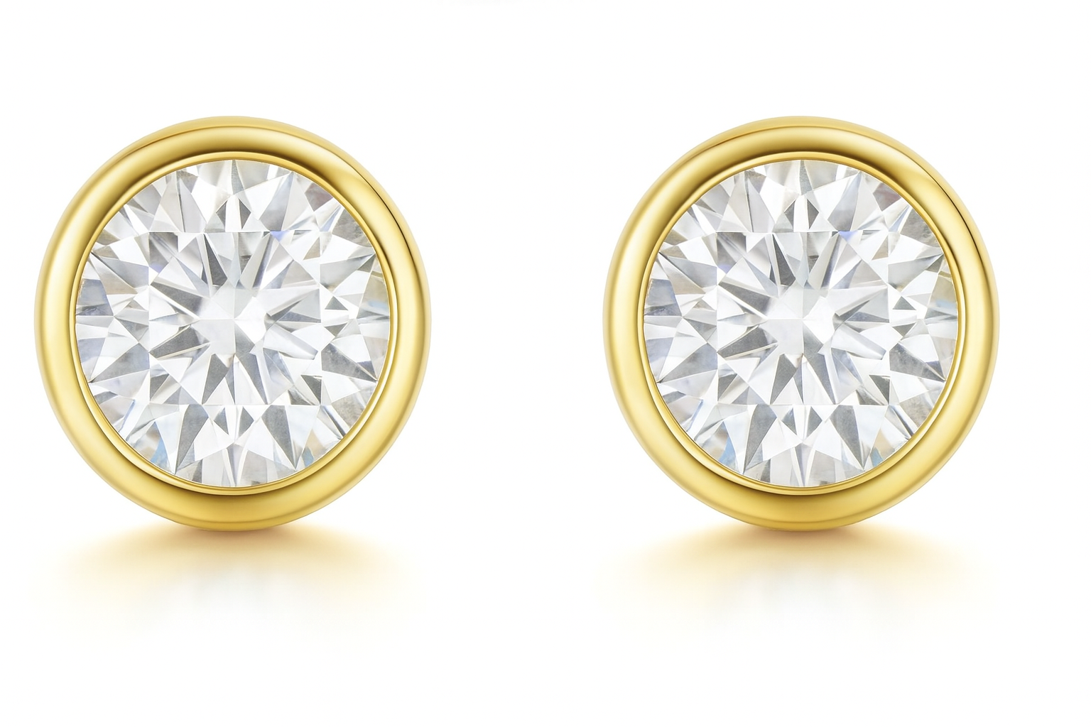 Gorgeous lab-grown diamond stud earrings, elegantly crafted in a modern bezel-set martini style. Each earring features a sparkling round-cut lab-grown diamond, radiating exceptional fire and brilliance while being securely encased in a sleek bezel setting for a smooth, refined finish.