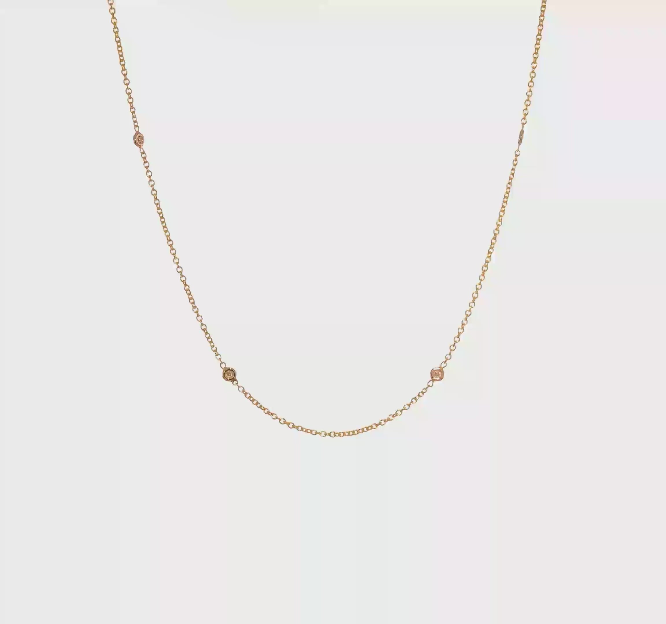 14K Two-Tone Diamond Stations Necklace. A timeless balance of modern sophistication and classic beauty. Crafted in lustrous 14K white and yellow gold, this delicate necklace features brilliant round-cut natural diamonds set at even intervals along a fine chain, creating a graceful sparkle with every movement.
