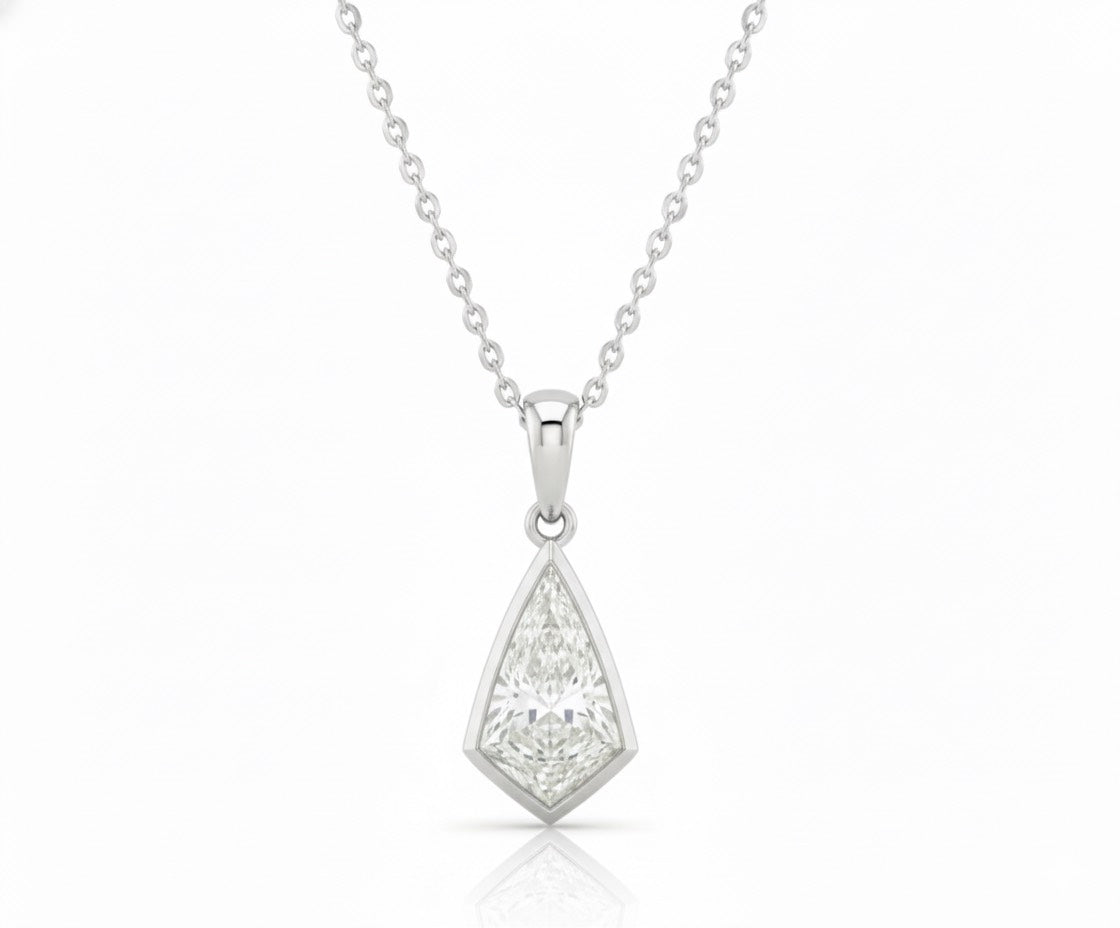 Redefine modern luxury with the Jacob Mercari Kite Bezel Solitaire Necklace. This striking piece features a brilliant lab-grown diamond oriented in a bold "kite" position, creating a sharp, elongated silhouette that feels both avant-garde and timeless.