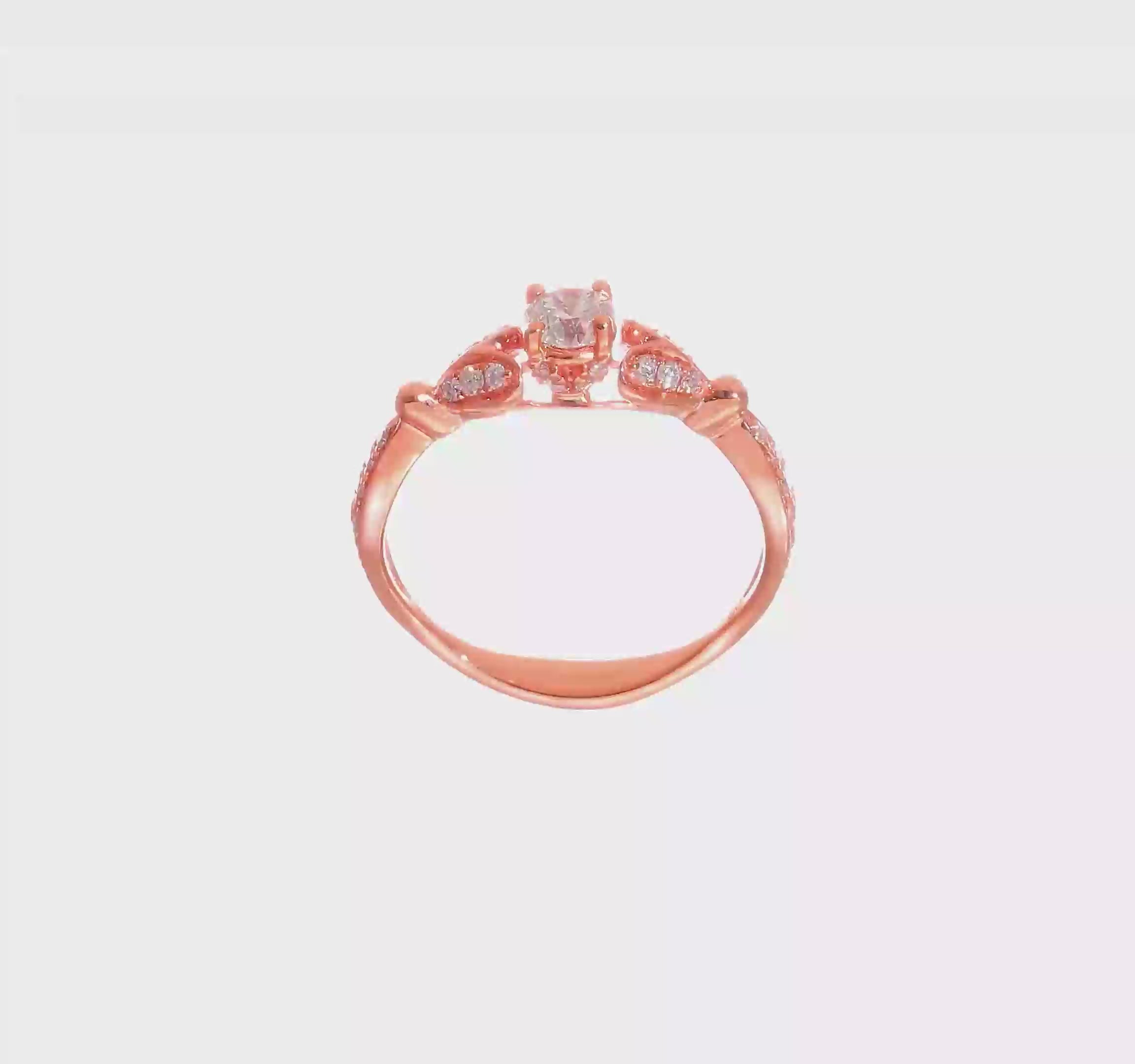 Vintage Style 14K Rose Gold Two Hearts Diamond Engagement Ring