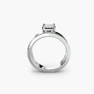 With a bold wide band, this solitaire ring makes a confident statement while highlighting the center stone with timeless elegance.